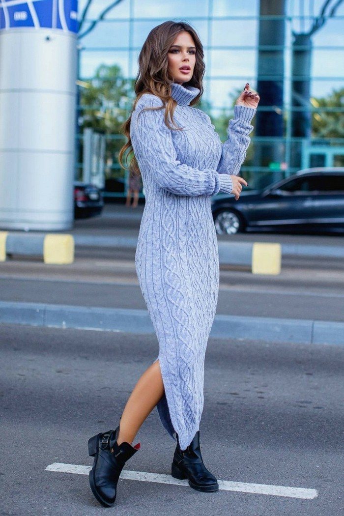 С трикотажем тоже можно экспериментировать с обувью: сапоги на каблуке, ботинки на низком ходу, берцы и даже кроссовки прекрасно подойдут для эффектного образа.