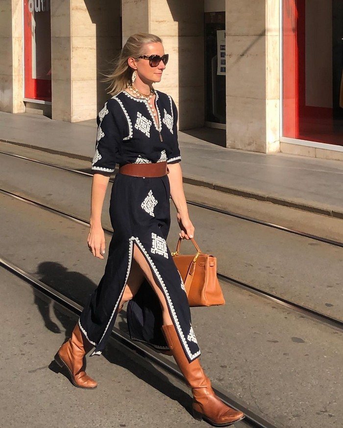 Платье – это элемент одежды, который есть в гардеробе каждой женщины. Но дамы после 40 выбирают платья средней длины, опасаясь крайности. На самом деле макси-длина подходит женщинам в любом возрасте, нужно лишь правильно комбинировать аксессуары и другие элементы. На реальных примерах станет ясно и понятно, как и с чем можно носить платья в пол этой осенью.
