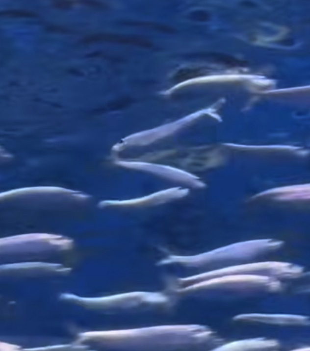 Косяки анчоусов и сардин движутся почти идеально синхронно, образуя серебристые вихри, которые сбивают с толку хищников. Такое поведение помогает стае выглядеть как единое целое, без уязвимых границ. Однако иногда одна или две рыбы внезапно разворачиваются и плывут в обратную сторону.