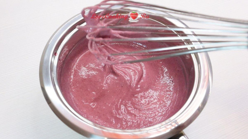 Ставим сотейник на плиту. Завариваем на медленном огне до загустения, постоянно перемешивая венчиком.