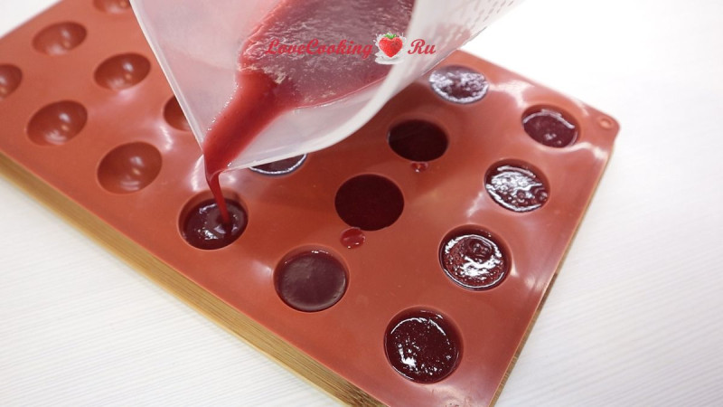 Разливаем по ячейкам силиконовой формы. 22 ячейки диаметром 2,5 см, глубиной 1,25 см.