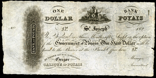 «Доллар» Банка Пояиса, напечатанный в Шотландии. Изображение: Wikimedia Commons