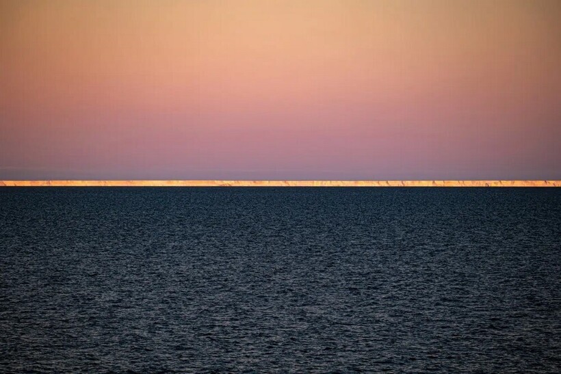 Минимализм природы и закат во время полярного дня над шельфовым ледником в Антарктиде