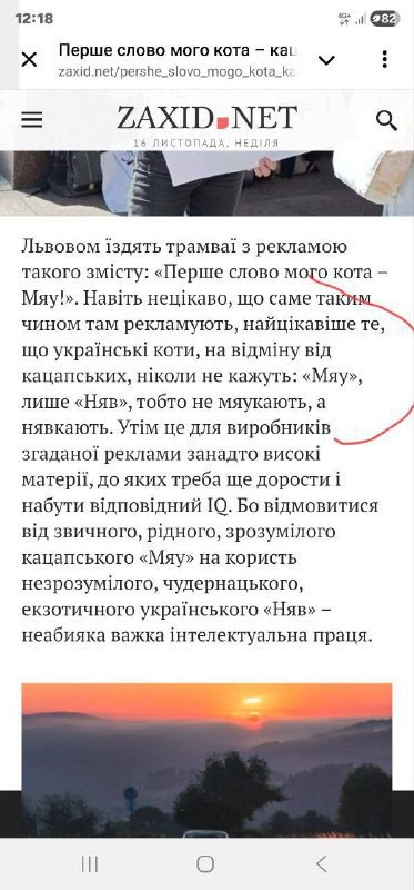 «Мяу»-это зрада: во Львове решили учить котов украинскому «няв». Во Львове новый языковой скандал: украинский публицист Илько Лемко возмутился рекламой корма с надписью «Первое слово моего кота — Мяу!», размещённой на городских трамваях.