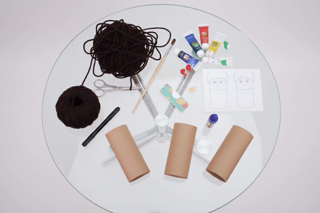 Приступаем к лицу. Покрасьте верхнюю треть каждой втулки в тон кожи членов семьи. Дайте краске полностью высохнуть.